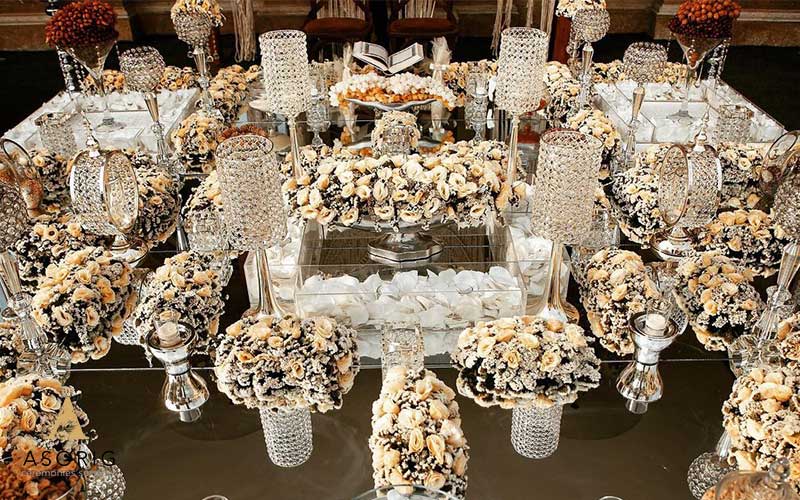 - استفاده از مجسمه ها و ظروف کریستالی و گران قیمت از ویژگی های بی نظیر سفره عقد مدرن به شمار می رود.