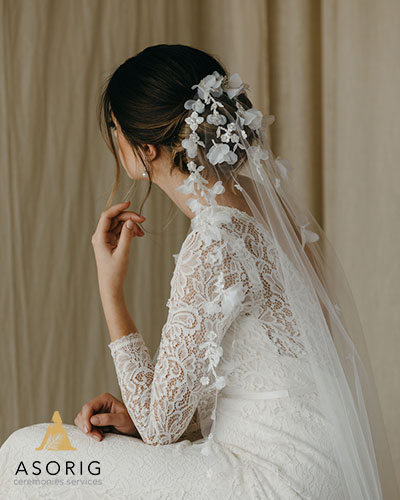 علاوه بر جزئیات سفارشی این لباس مجلسی که عروس به طراحی خودش کمک کرده است نباید از مدل موی آن غافل شد. وجود یک بان ساده و کلاسیک هارمونی زیبایی با لباس عروس ایجاد کرده است.
